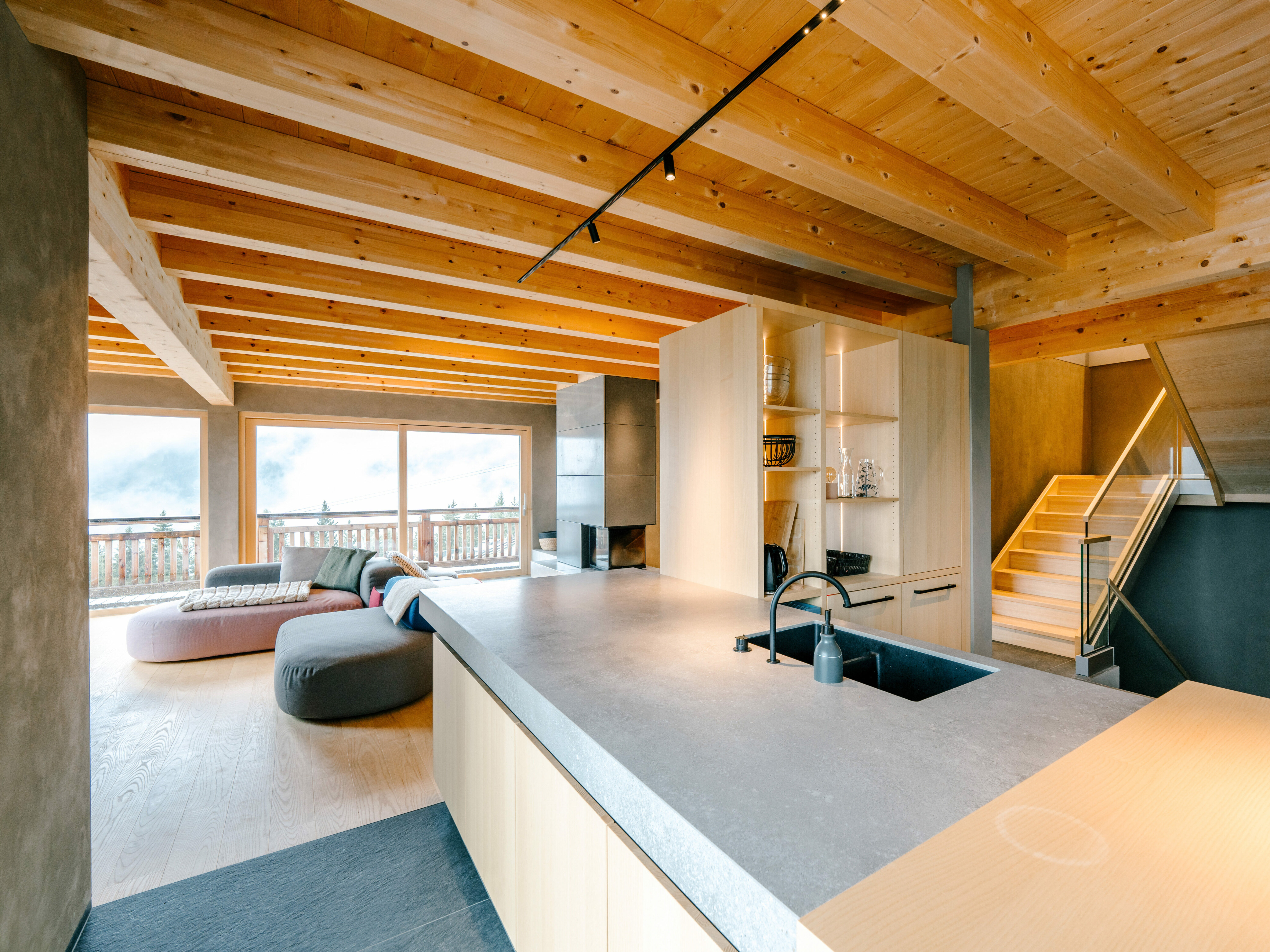 Bis zu 16 Gäste finden im luxuriösen aber rustikalen Ambiente des Bergchalets Platz für ihre Auszeit. In individuellen, bis ins Detail gestalteten Räumlichkeiten samt ausgedehntem Wellness- und Eventbereich. Naturgeöltes Eschenholz, getrocknete Blumen von der Alm, Lehmputze und andere hochwertige Naturmaterialien erschaffen ein entspannendes Klima, damit Sie in der Abgeschiedenheit zur Ruhe zu kommen können.