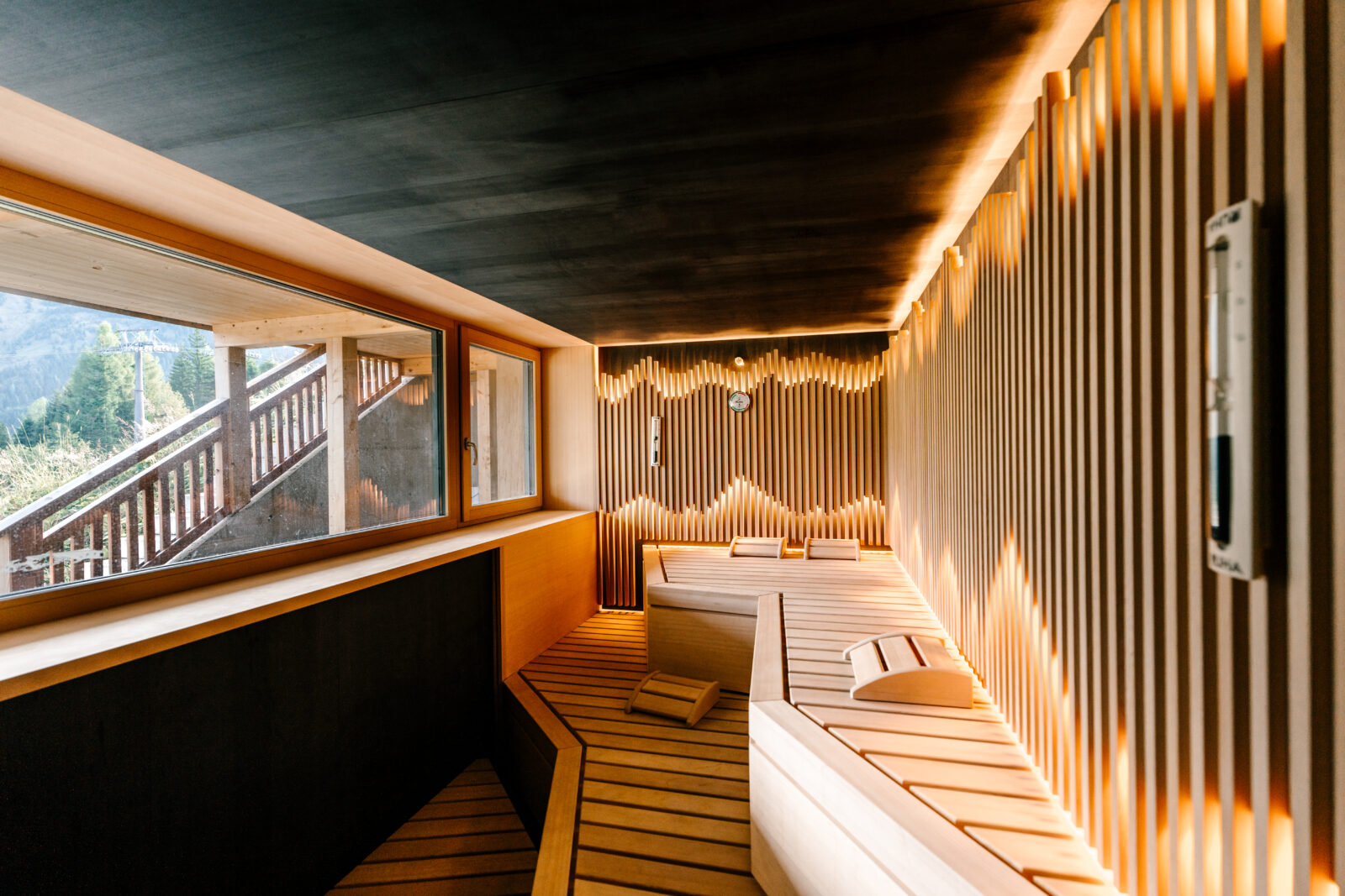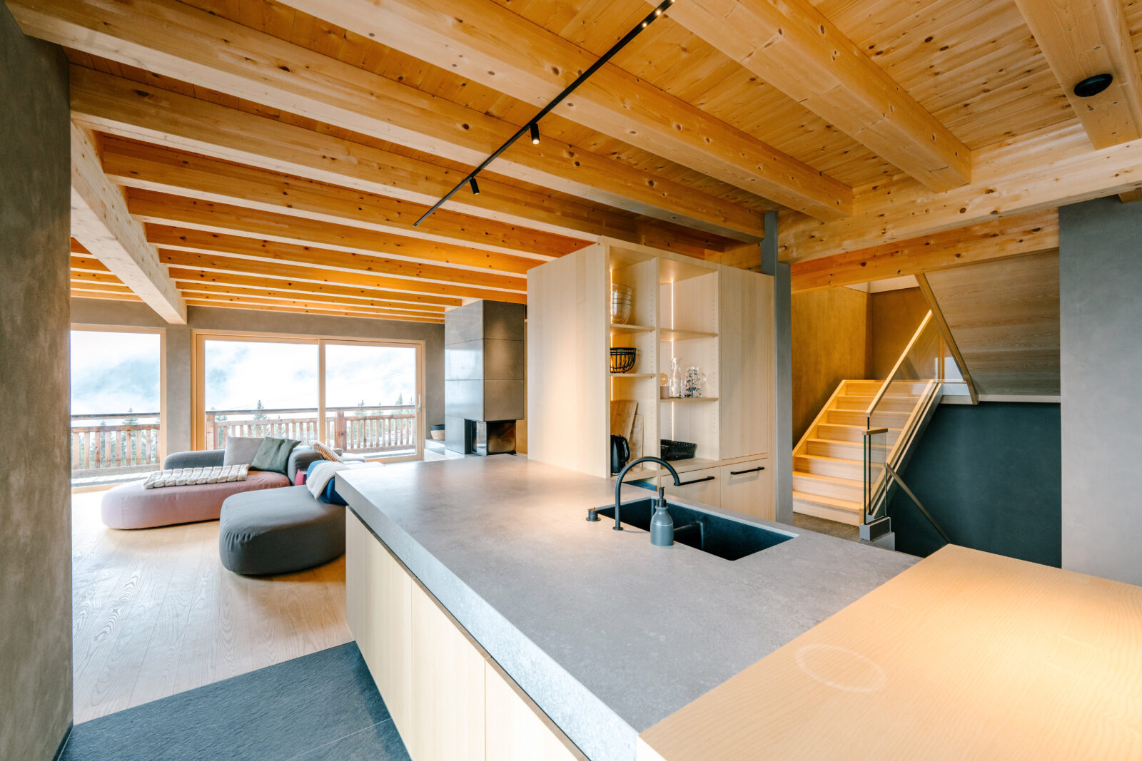 Up to 16 guests can find space for their getaway in the luxurious yet rustic ambience of the Bergchalet. In individually in every detail designed premises, including an extensive wellness and event area. Natural oiled ash wood, dried flowers from the alpine meadows, clay plasters and other high-quality nature materials create a relaxing climate, so that you can find rest in the seclusion.